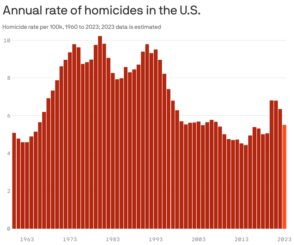 Homicide rates in the US paint a grim picture of rampant crime, with 2023 seeing higher rates than the entire decade from 2010 to 2019. And while some may tout a decrease compared to 2022, the truth remains that violent crime continues to plague our nation.